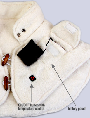 Please note that the actual heating time always depends on the surrounding temperature. The Li-Ion batteries reach its full power after having been fully charged and fully drained several times! Additional batteries can be purchased separately if extended heating times are needed! Turn OFF the Thermo Products by pressing the ON/OFF keypad control button several seconds until the LED light turns off. Always unplug the batteries when the products are not in use and store them inside the pouch. The high-quality 3800 mAh Li-Ion Polymer Batteries (no memory effect!) cannot be damaged by frequent charging and can be re-charged approximately 500 times!